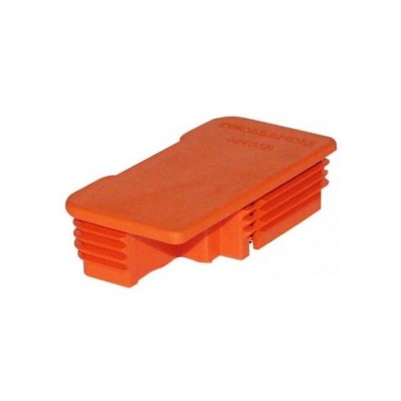 Oranje kunststof afsluitdop rechts passend op aluminium bumper 100x50mm.